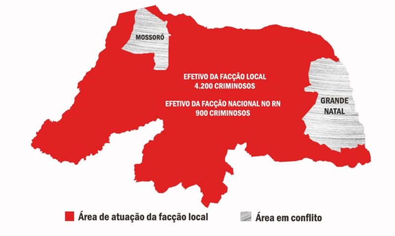 Para o Foseg, a disputa territorial pelo controle do tráfico de drogas no Rio Grande do Norte é uma das principais causas dos altos índices de violência no estado, senão a mais grave delas. Hoje, o RN aparece como o estado com a maior taxa de homicídios do país. Segundo o Fórum Nacional de Segurança Pública, foram 2.386 mortes violentas no estado em 2017, o que representa 68 assassinatos para cada grupo de 100 mil habitantes. A média nacional possui uma taxa de 63.8.