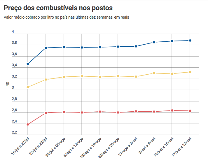 Veja o aumento nos preços de combustíveis nas ultimas dez semanas