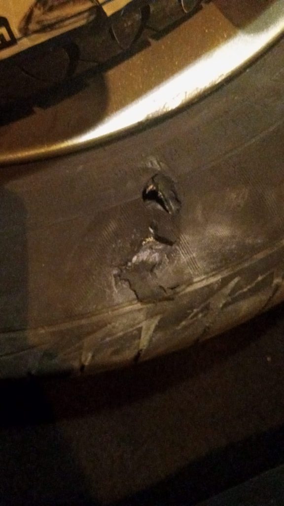 “Vindo de Macaíba, sentido aeroporto, com passageiro, botaram uns grampos na pista, quase o carro capotou, mas graças a Deus só tive o prejuízo de um pneu”, relatou a vítima.