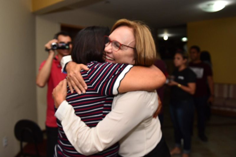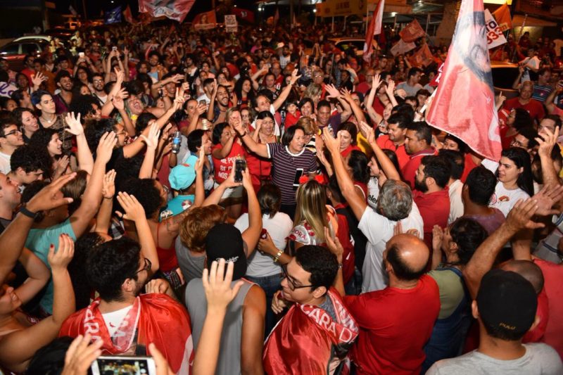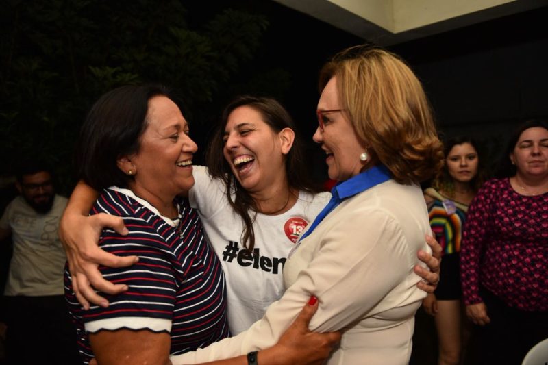 Logo após a coletiva, Fátima, Zenaide e os deputados federais eleitos participaram de comemoração com os militantes e apoiadores no Ponto Sete, em Ponta Negra.