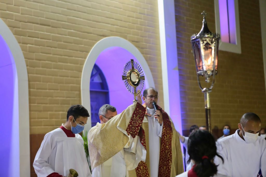 O pároco da cidade, padre Porcídio Lopes saudou a governadora e autoridades, lembrou as dificuldades impostas pela pandemia da covid-19 e exortou todos a manterem medidas preventivas e tomar a vacina.