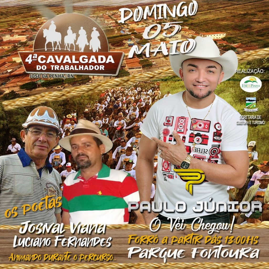 A Prefeitura de José da Penha, por meio da Secretária Municipal de Cultura e Turismo, realizará no próximo domingo, 05 de maio, a IV Cavalgada do Trabalhador que vai reunir, em um só local, os amantes de cavalos e da música de cavalgada.