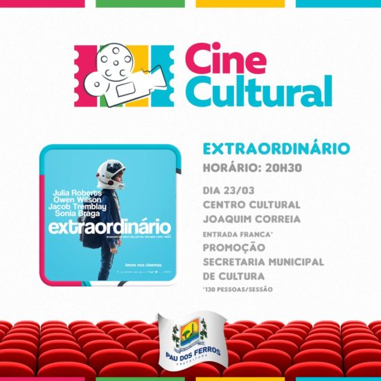 Nesta sexta-feira (23) a Prefeitura de Pau dos Ferros, através da secretaria municipal de Cultura e Turismo (SECULT) estará dando início ao projeto Cine Cultural, voltado a exibição de filmes, de forma gratuita, a toda a comunidade pau-ferrense.