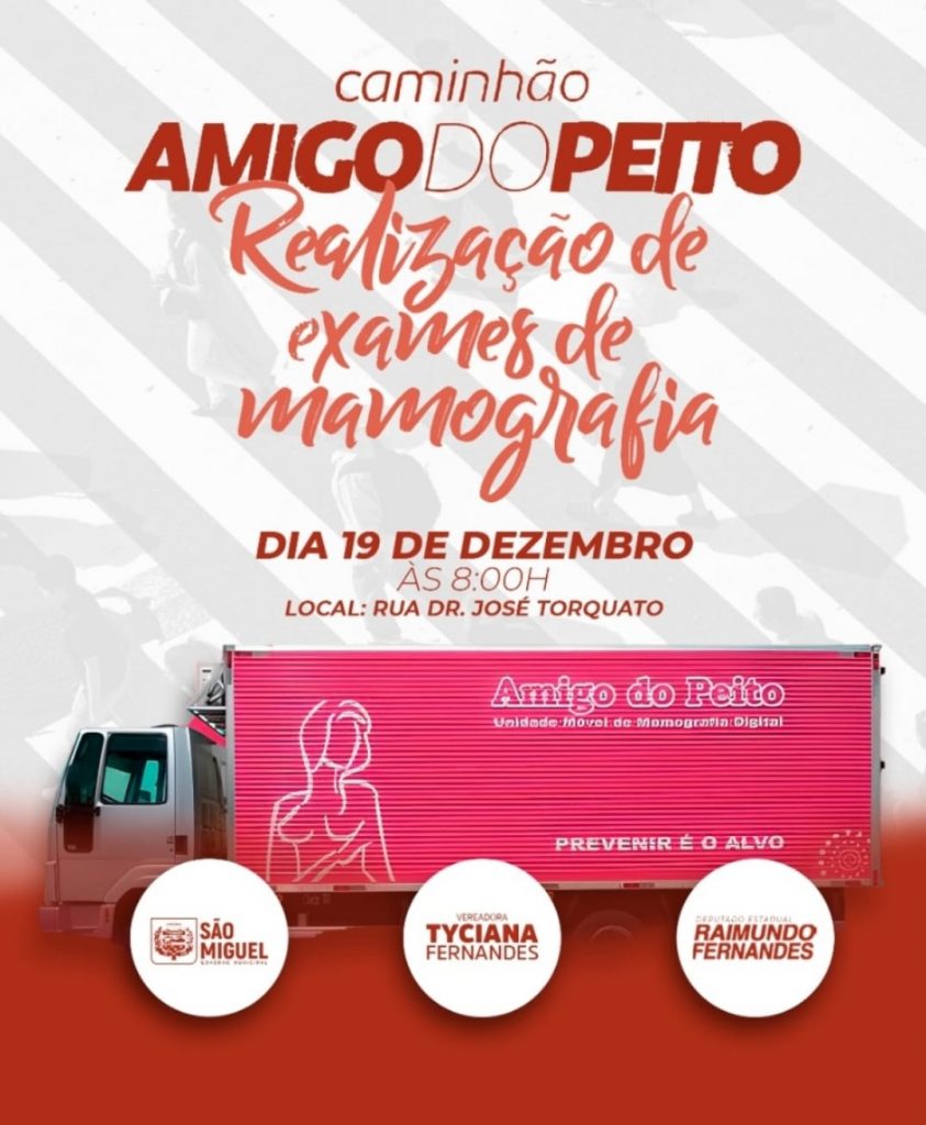 O projeto amigo do peito também estará inserido dentro do projeto solidário da vereadora Tyciane Fernandes para atender a população que tanto preciso desse exame.