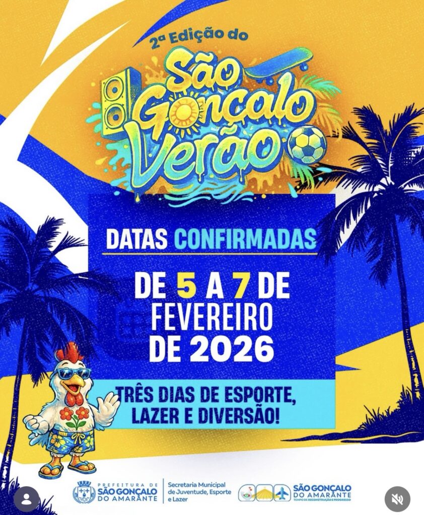 O verão em São Gonçalo do Amarante já tem data marcada para ficar ainda mais animado. A Prefeitura confirmou a realização da 2ª edição do São Gonçalo Verão, que acontecerá nos dias 5, 6 e 7 de fevereiro de 2026, reunindo esporte, lazer e muita energia positiva.